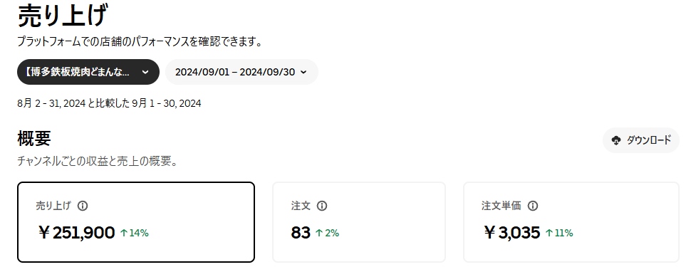※実店舗の営業中に店内が忙しい時は受注を止めていてこの実績です。