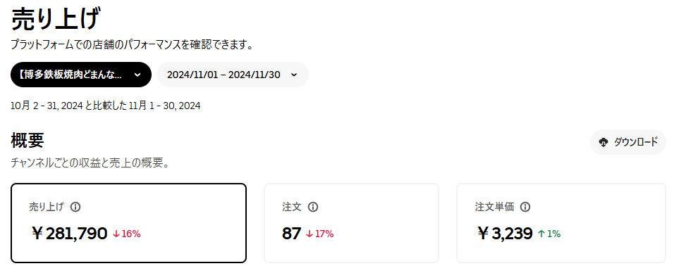 東京都足立区という郊外での2024年9月~11月 平均24日営業、17~23時の実働6時間、3か月間の実績